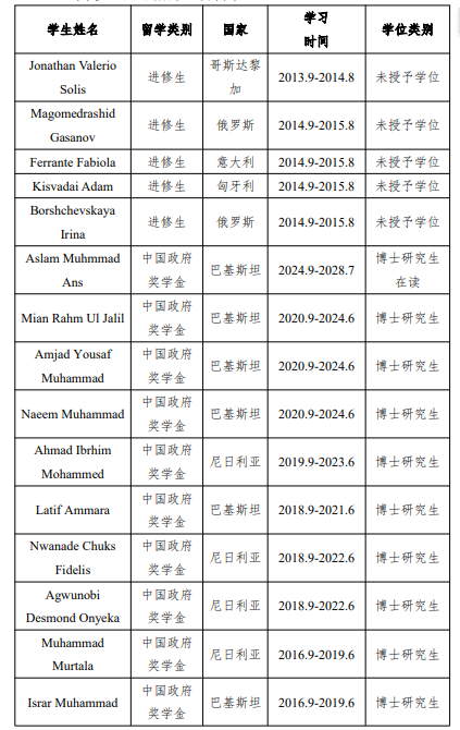 图1 项目招收的外籍留学生名单